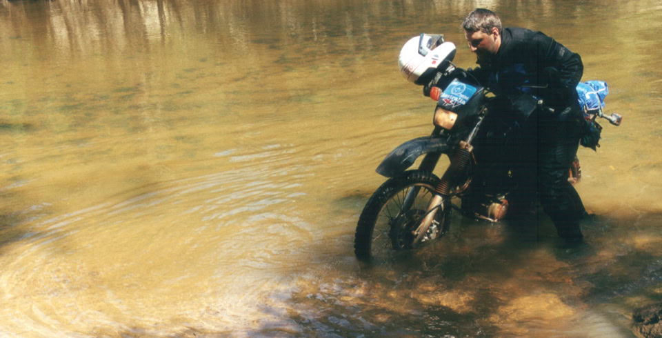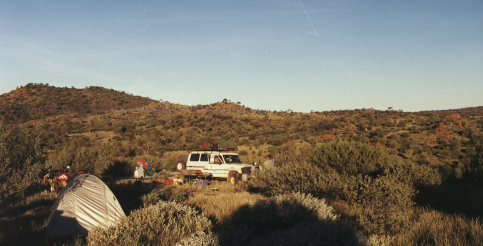 Die naechsten Tage verbringen wir im berühmten Zentrum Australiens, den Ayres Rock, den Olgas und dem Kings Canyon. Naehere Informationen bekommt Ihr in meinen Bericht “Australien Outbacktour 1998”. Nach drei Tagen geht es weiter nach Alice Springs. Leider ist die “Giles Road” wegen Überschwemmung gesperrt, so das wir den Umweg über den geteerten Lassiter- und Stuarthighway fahren müssen. In Alice Springs legen wir wieder eine eintaegige Pause ein um uns der Stadt, die ihre Existenz einer Telegraphenleitung von 1871 zu verdanken hat, intensiver zu widmen. Zum Pflichtprogramm gehören das Araluen Arts Centre, das Adelaide House, die Old Telegraph Station und das Spencer & Gillian Museum. Am Abend besuchen wir ein Pub in dem eine Reptilienshow, eine Digerrydovorführung und eine Country Concert stattfindet. Die geplante Route durch die Simpson Desert können wir wegen einer Überschwemmung nicht fahren. Also kurz auf die Karte geschaut, einige Informationen von der Rangerstation eingeholt und schon stand die Alternativroute fest. Wir fahren zunaechst dem Ross River Highway folgend in die Östlichen McDonnell Ranges vorbei am Emily Gap, Jessie Gap, Ross River bis nach, nur mit Gelaendeautos und - motorraedern zu erreichende, Arltunga. Immer wieder bin ich über die blühende Vegetation begeistert. Auch treffen wir zum ersten Mal auf Schlangen. Von Arltunga aus wollen wir den “nur” 75 km entfernten liegenden Plenty Highway erreichen um dort unser Buschcamp zu errichten. Doch es wird schwieriger als wir es uns vorgestellt haben. Die Strecke erreicht absolutes Gelaendeniveau. Wir benötigen für ca. 40 Km drei Stunden Fahrzeit, und unser Begleitfahrzeug sogar noch 1 ½ Stunden laenger. Die Strecke erfordert schon einiges Fahrkönnen, da der Untergrund von groben Schotter bis zum tiefen Treibsand alles aufweisen kann. Bei einer sehr steinigen Auffahrt verliert Christoph die Balance und stürzt. Leider habe ich an diesen Tag einige Umfaller mit leichten Blessuren aufzuweisen. Wir beschließen also an einen kleinen See unser Buschcamp aufzuschlagen. Vor dem Essen gehen wir noch baden und beenden den Tag mit ein paar Dosen “Victoria Bitter”. Der Tag darauf bringt jedenfalls auf den ersten 38 km keine Besserung. Nach zwei Stunden Schwerstarbeit erreichen wir durchnaesst von Schweiß endlich den Plenty Highway. Nach zwei Tagen und zwei weiteren Buschcamps erreichen wir die Stadt Cloncurry. Auch haben wir die ersten Probleme mit unseren Motorraedern. Bei Ad muss die Batterie gewechselt werden und bei Beat bereitet der Vergaser einige Probleme. Cloncouryy ist eine Stadt mit Geschichte. Dort wurde naemlich die erste Flying Doctors Niederlassung errichtet und sie war das Ziel des ersten Linienfluges der Quantas Airlines. Auch die 1860 entdeckten Kupfervorkommen trugen zu Ihrer Bekanntheit bei. Am naechsten Tag war wieder Buschcamp an den 370 km entfernten Lighting Falls angesagt. Doch beim erreichen der Wasserfaelle müssen wir sie erst mal suchen, denn Hardy erzaehlte uns was von einer Sanddüne als Orientierungspunkt, die gar nicht mehr vorhanden war. Am oberen See der Wasserfaelle sehen wir zum erstenmal Süßwasserkrokodiele. Obwohl Hardy zu uns sagt wir können ruhig schwimmen gehen, den angeblich sollen die Süßwasserkrokodiele Menschenscheu sein, wagt es doch keiner von uns.