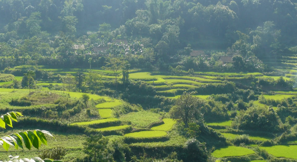 Wir folgen den Highway No 6 in westlicher Richtung. Nach ca. einer Stunde haben wir Hanoi hinter uns gelassen. Doch wo ist Georgia, Hong und Hakan? Nach einer halben Stunde warten kommen sie endlich und wir erfahren das Georgia einen Platten hatte der mal eben behoben werden musste. Die Suppe läuft, die Luft ist sehr drückend und jeder Stopp ist eine Qual für mich, denn ich habe mich noch nicht ans Klima gewöhnt. Doch die ersten schönen Landstriche lassen die Strapazen der Hitze erträglich werden. Wir folgen eine kurzen Moment den Flußlaufes des Red Rivers um dann uns westlich zu unseren Endziel Mai Chau zu orientieren. Mai Chau ist ein kleiner Ort der bekannt für sein Kunstgewerbe und Seidenprodukte ist. Die erste Übernachtung wird in einen so genannten Homestead durchgeführt. Homestead oder Familystead sind Unterkünfte bei Einheimischen Familien. Man bekommt sozusagen das Familienleben live mit. Nachdem wir uns frisch gemacht haben besuchen wir das Künstlerdorf. Nach einen leckeren Abendessen werden uns die Einheimischen Tanzritualen vorgeführt. Wir beenden den Abend mit einigen Gläsern Reiswein.